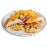 Succulent grilled chicken, tangy BBQ sauce, crisp lettuce, and creamy mayo, all nestled in a warm, crusty ciabatta. Order now for a mouthwatering BBQ treat!