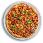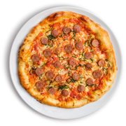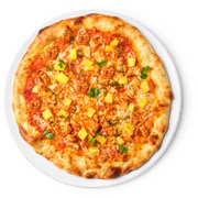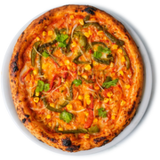 "Peter Pizza’s signature Margherita is a timeless classic featuring a perfectly baked thin crust topped with a rich, tangy tomato sauce and generous layers of creamy, fresh mozzarella. Accented by the subtle sweetness of ripe tomatoes and a drizzle of olive oil, this pizza is finished with fragrant basil leaves, offering a simple yet irresistible blend of flavors.