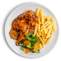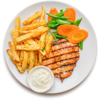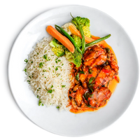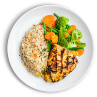 Tender, perfectly seasoned, and grilled to juicy perfection. A flavorful and protein-packed delight!Grilled chicken served with rice & steamed vegetables