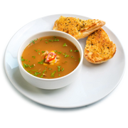 A light, flavourful oriental broth with chicken, sweet corn, egg drop, coriander & ginger. Optional chillies add heat, served with garlic bread.