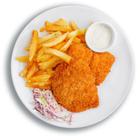 Tender strips of juicy chicken, coated in a crispy, seasoned breading and fried to golden perfection. Perfect as a snack or main, they deliver a satisfying crunch with every bite.