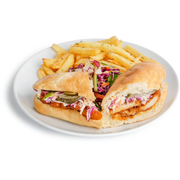 Crispy fried chicken tenders with ranch sauce and chilli oil, topped with coleslaw and pickled cucumber, served in fresh ciabatta bread.