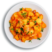 A zesty pasta dish featuring al dente penne tossed in a fiery tomato sauce infused with garlic, chilli flakes, eggplant, and fresh herbs. A tantalizing blend of heat and flavor to delight your taste buds.