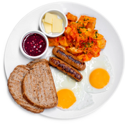 Choose your toast, two sausages, two eggs (to your liking), choice of home fries or french fries, served with butter and our fan favourite Art Jam (tree tomato).
