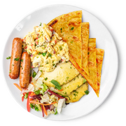 Our signature chapati pairs with kachumbari scrambled eggs, two sausages, and tender boiled sweet potato for a breakfast that awakens the Kenyan in you